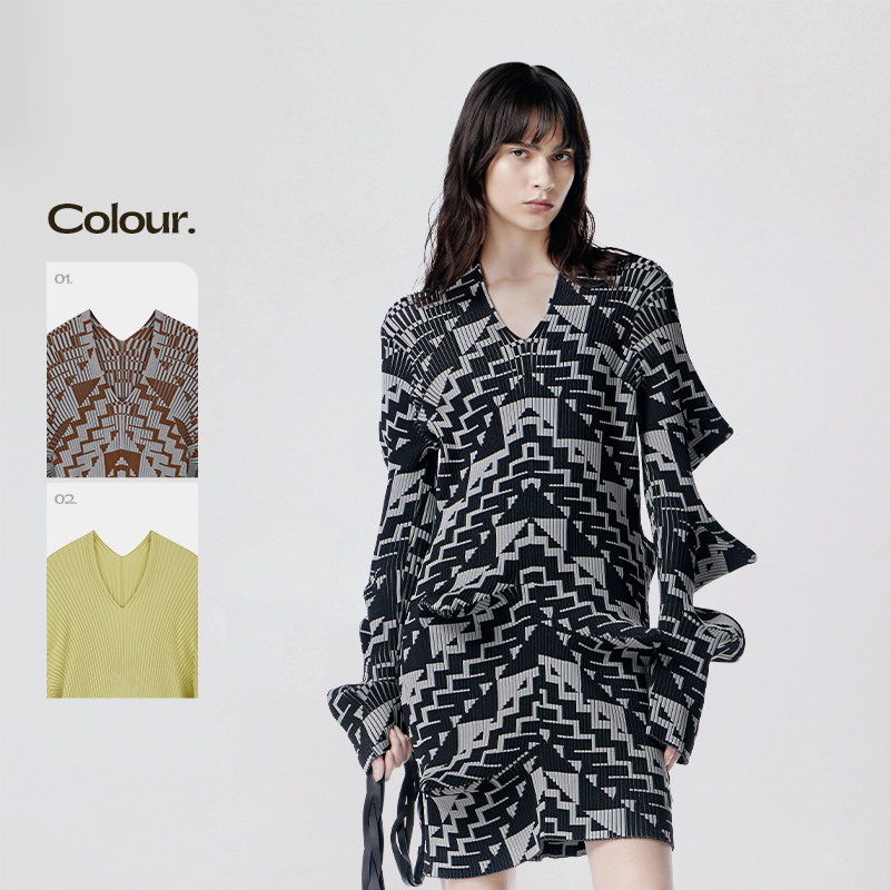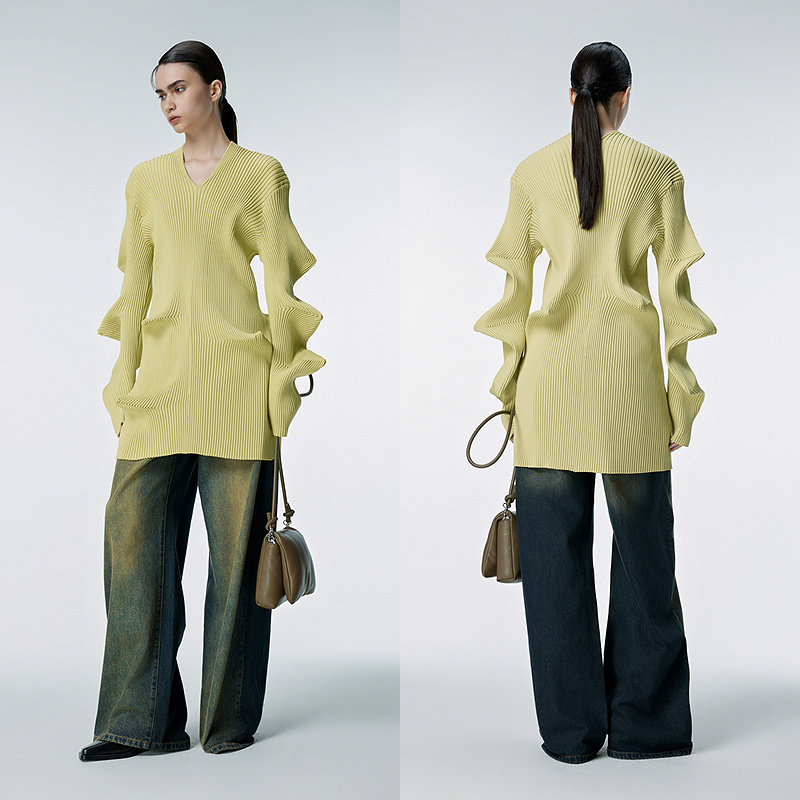 BANANA CICI2026年春季新款荷叶边V领针织衫/连衣裙