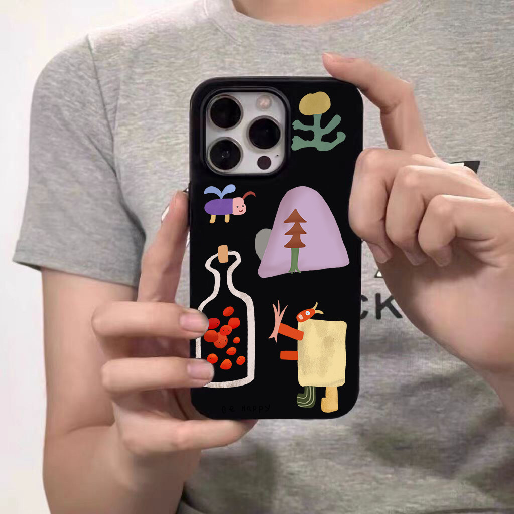 ins风简约卡通奇异插画适用苹果17pro软壳16promax手机壳磨砂iphone14亮黑色15pro硅胶13个性12小众11全包