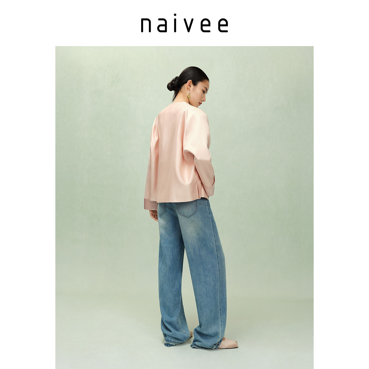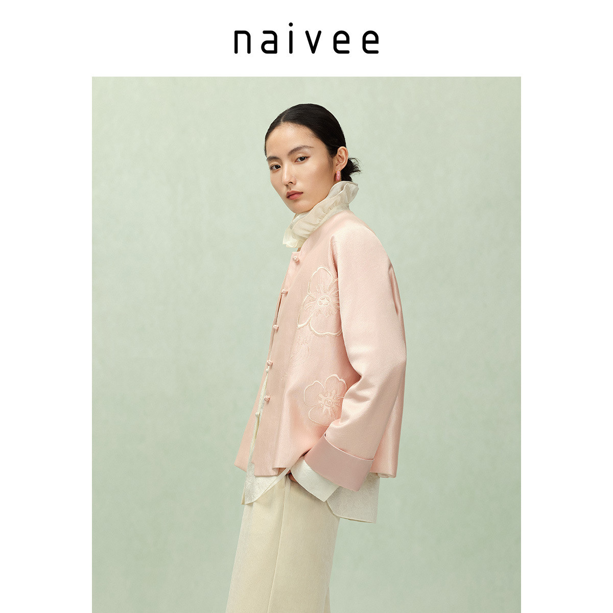 商场同款naivee纳薇25秋新款新中式钉珠刺绣外套女抱花富月半弯领