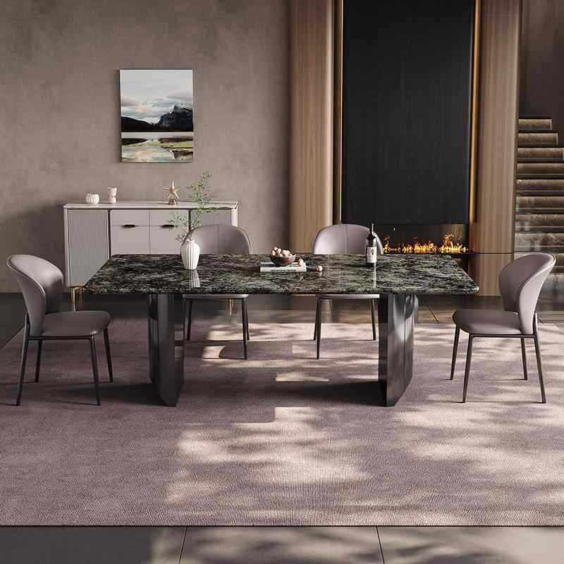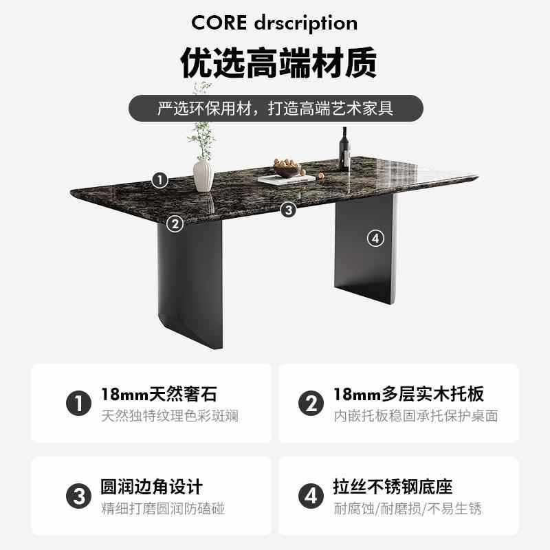 现代简约天然大理石奢石餐桌长方形吃饭桌家用高端别墅餐桌椅组合
