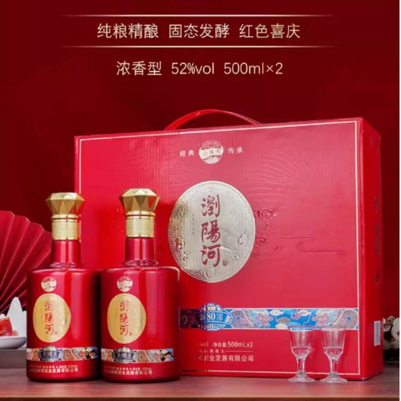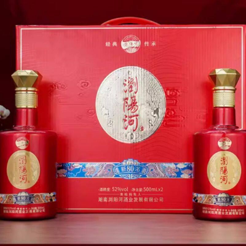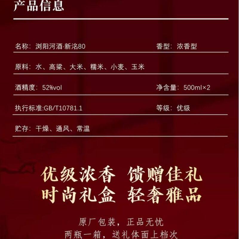 浏阳河春节送礼500ml*2瓶新洺80浓香型52度白酒礼盒装500ml*2瓶