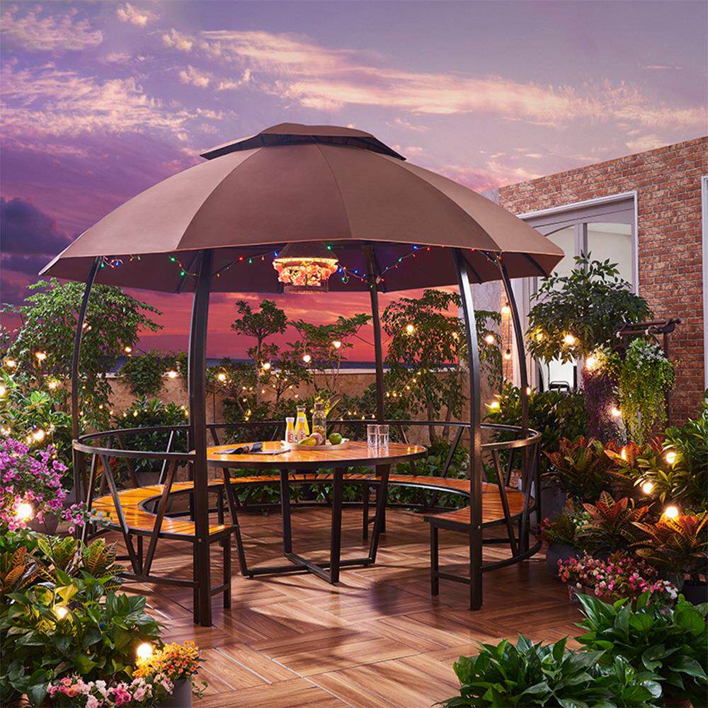 户外凉亭遮雨亭庭院室外遮阳棚花园露台圆形休闲亭茶水亭简易房屋