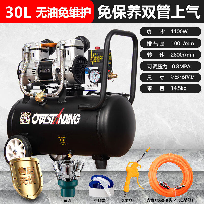 奥突斯工业级无油静音空气压缩机木工喷漆家高压充气泵空压机220v