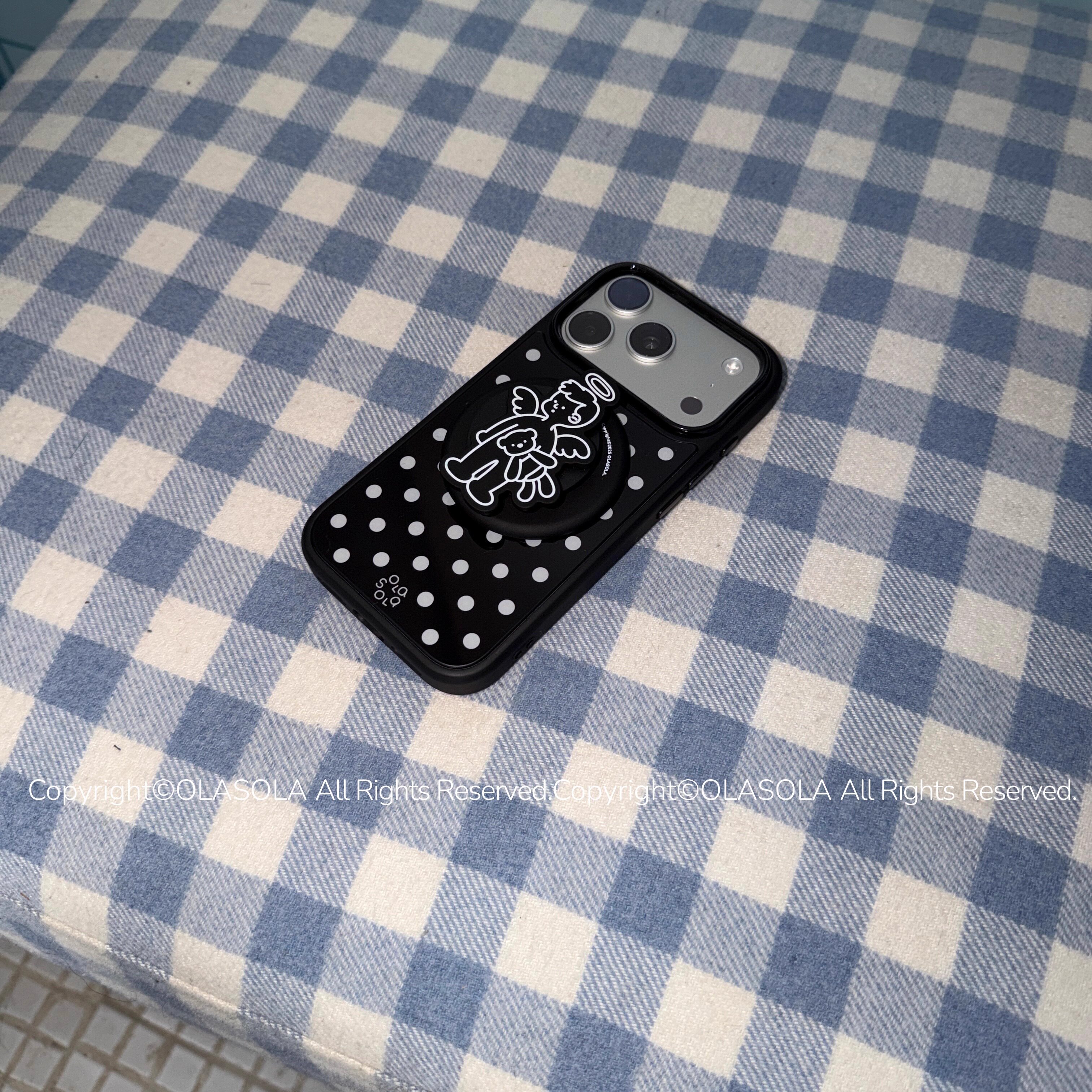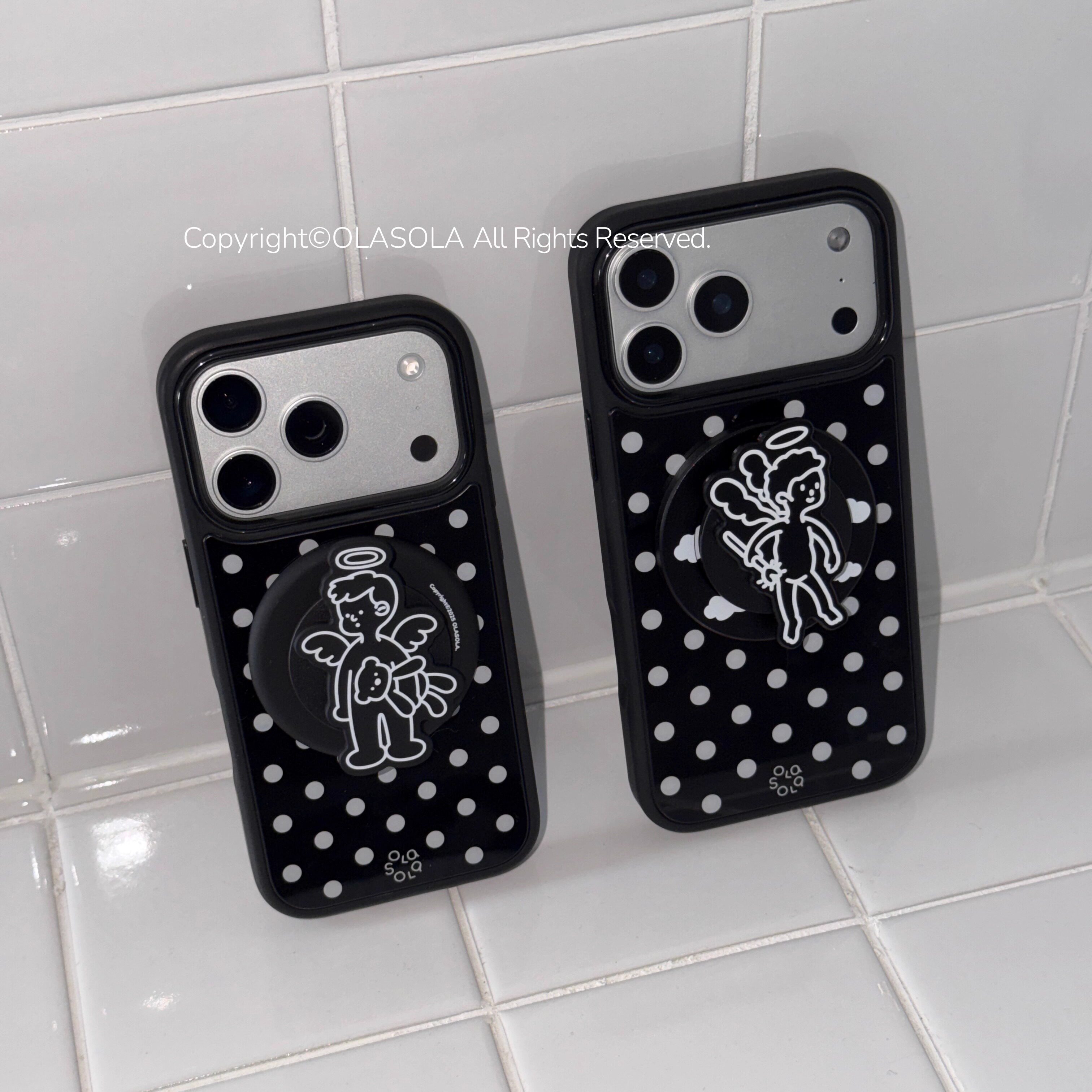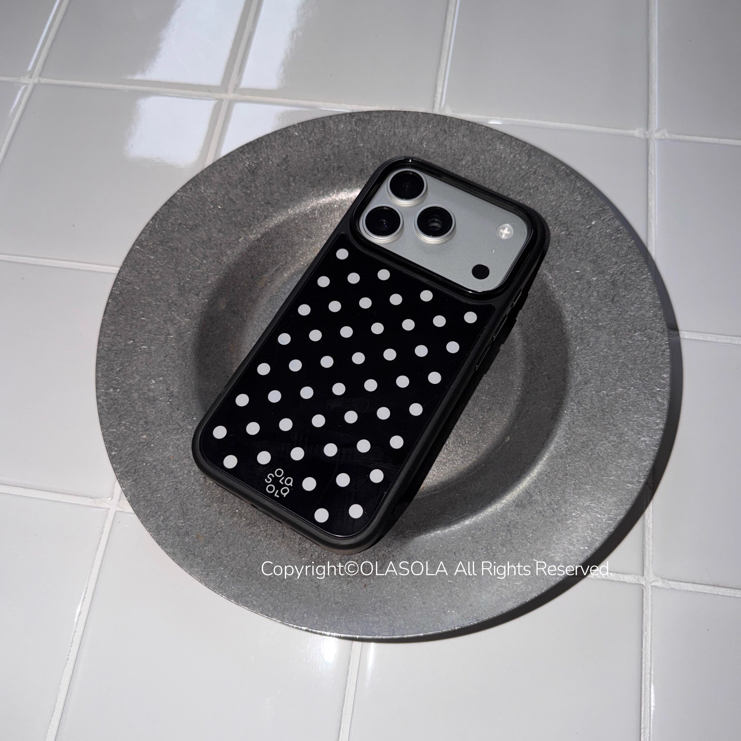 OLASOLA|原创黑白波点磁吸手机壳适用苹果iPhone17promax简约风日韩系16pro小众设计ins亮面高级感手机保护套