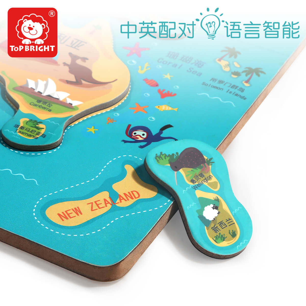 特宝儿大号磁性世界地图 儿童趣味亲子游戏亲子益智地图大块磁性拼图3岁+儿童玩具益智学习游戏礼物文创
