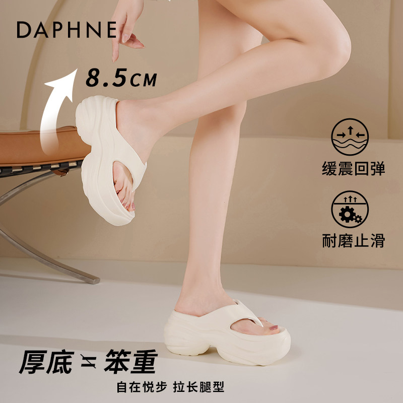 达芙妮厚底人字拖鞋女夏季2025新款外穿小个子增高防滑沙滩凉拖鞋