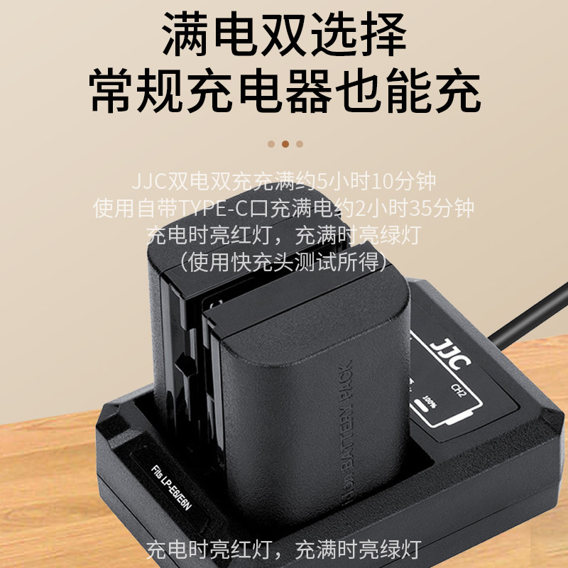 【3C认证】JJC Type-C直充LP-E6P相机电池适用佳能R63 R52 R5C R62 R7 R6III 90D 5D4 5D3 R5微单反续航配件
