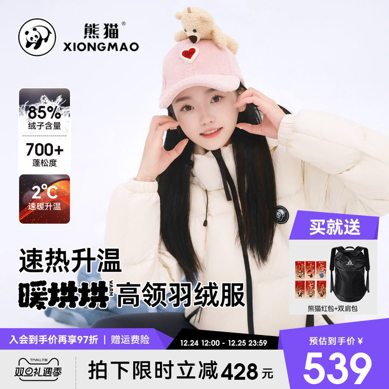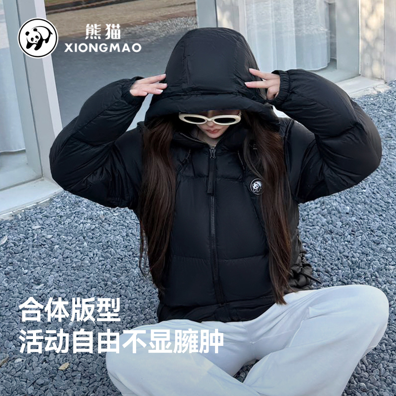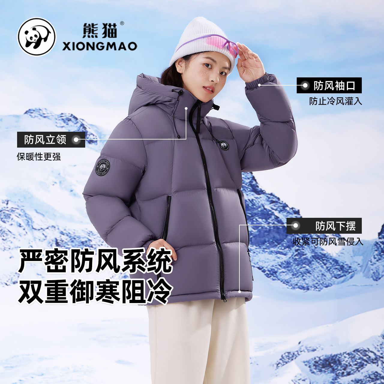 熊猫羽绒服女款冬季户外防雨雪白鸭绒抗寒面包服外套加厚羽绒外套
