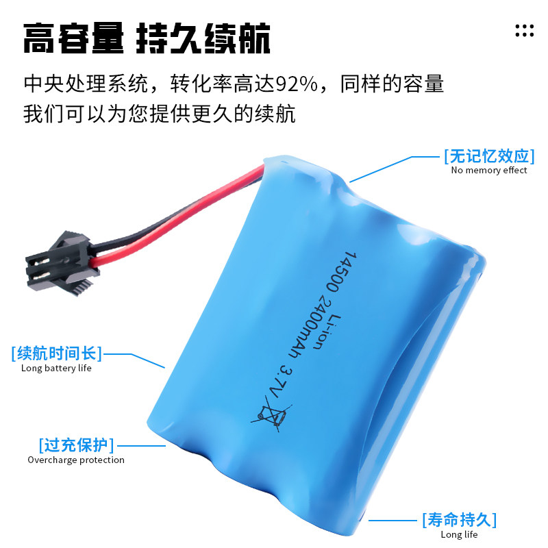 5号3.7v14500锂电池并联带线电池组玩具车遥控车飞机泡泡机18650