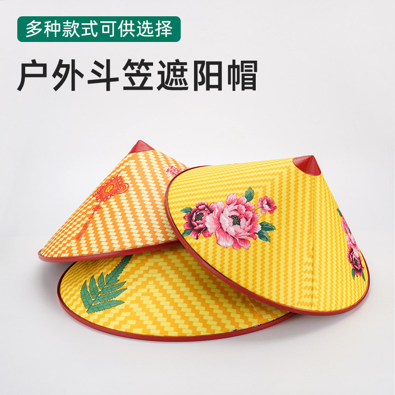 户外防雨斗笠夏季农民大檐草帽钓鱼帽塑料遮阳防晒帽田园采茶帽子