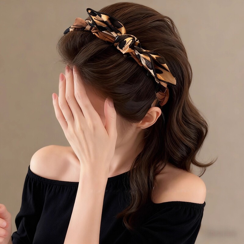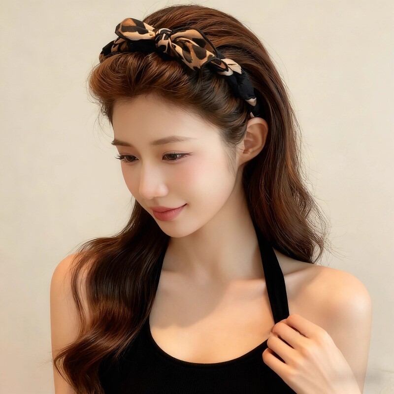 蝴蝶结豹纹发箍女2025新款日常外戴发带高颅顶洗脸头箍压发卡头饰