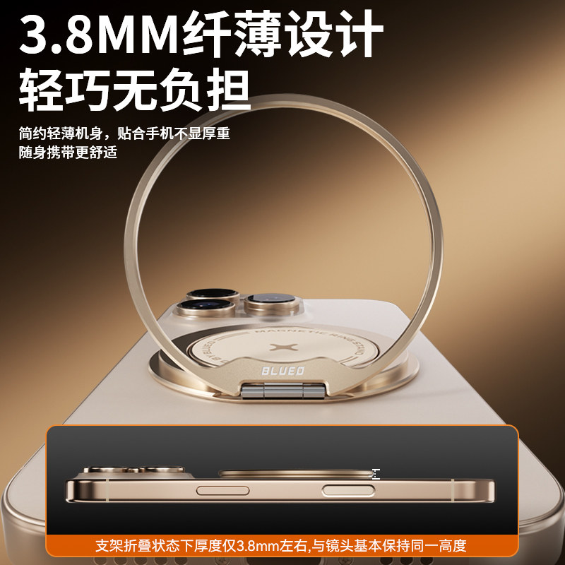蓝猩超薄磁吸指环扣手机支架适用苹果防摔可拆卸桌面360度旋转折叠吸附懒人神器多功能直播追剧看电视背贴撑