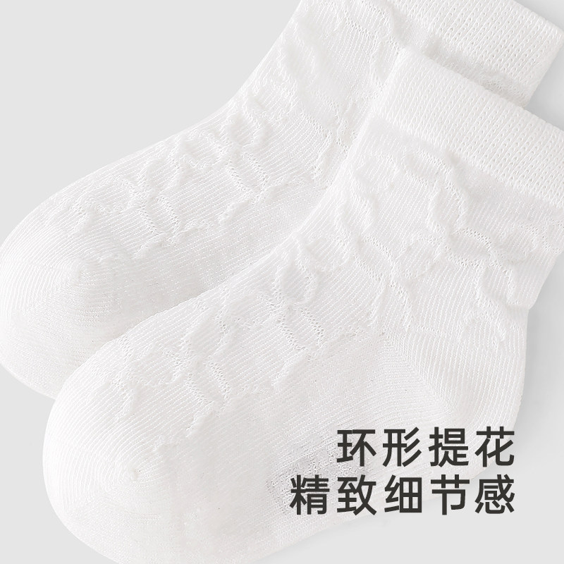 【商场同款】英氏婴儿袜子春夏薄款女宝宝透气抑菌白色新生儿袜子