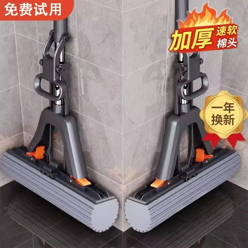 海绵拖把免手洗2025新款一拖家用吸水地拖神器净墩布胶棉头对折式