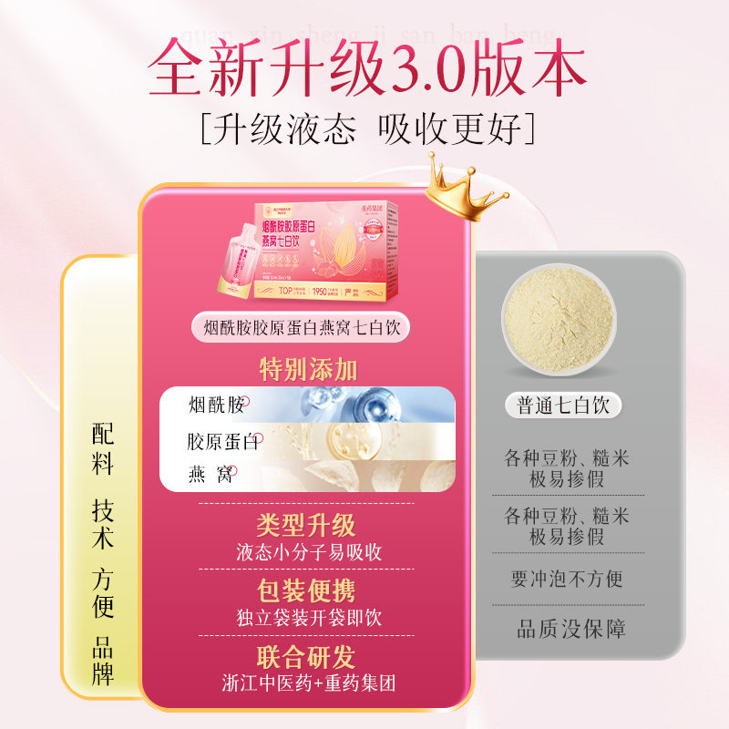 杏仁七白饮粉烟酰胺燕窝胶原蛋白即食饮品非美白口服免冲泡