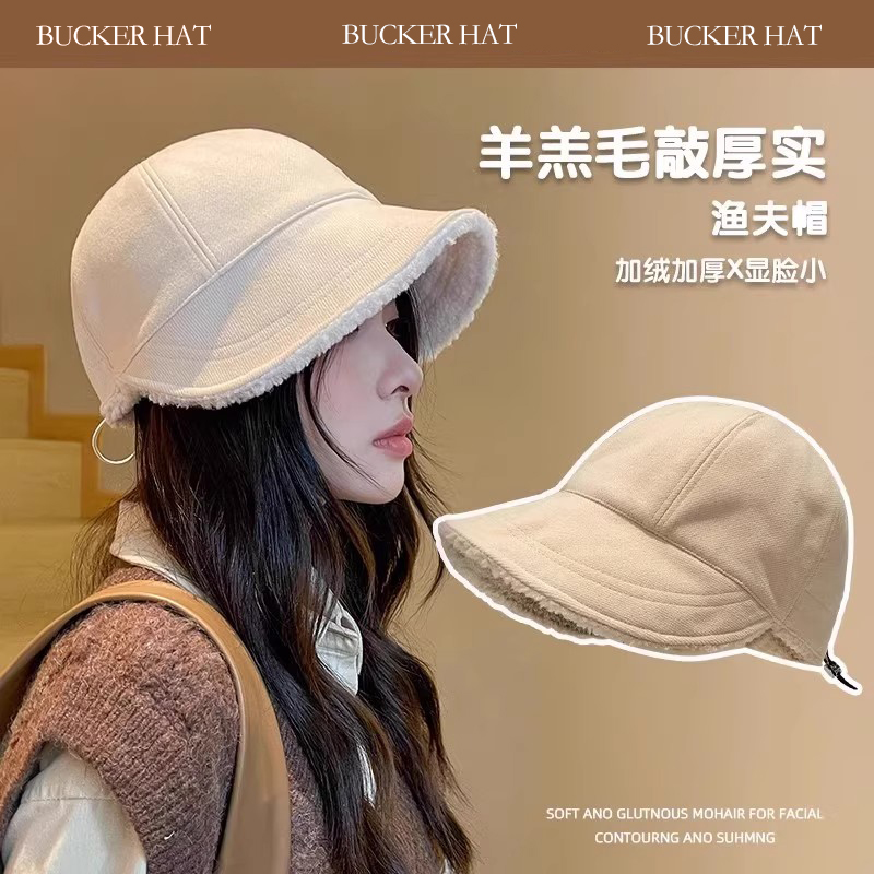 赵露思同款帽子加厚保暖渔夫帽大头围大脸羊羔毛鸭舌帽2025秋冬款
