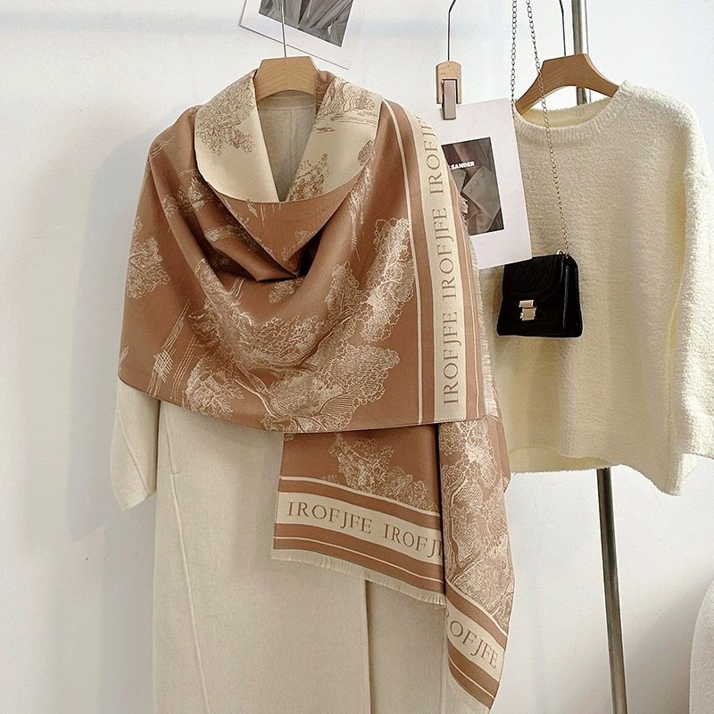 上海故事2025秋冬新款围巾女绵羊毛刺绣加厚保暖披肩女送长辈礼盒