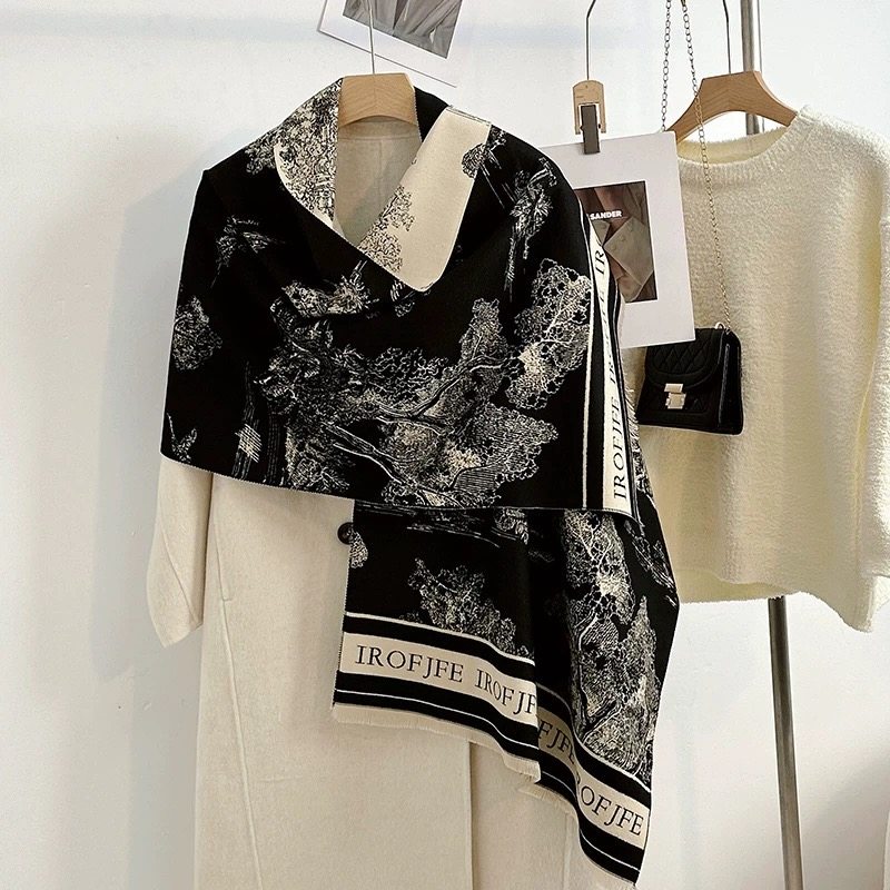 雪花双面针织围巾女秋冬季韩系氛围感加厚保暖高级感围脖复古披肩