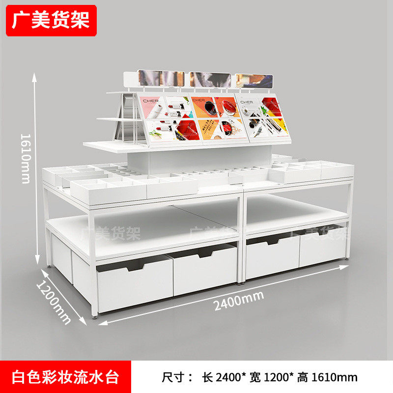 名创商场货架展示台彩妆货架三层流水台文具饰品母婴店彩妆展示柜