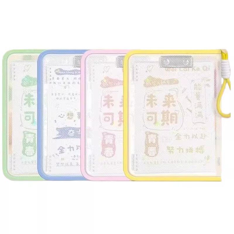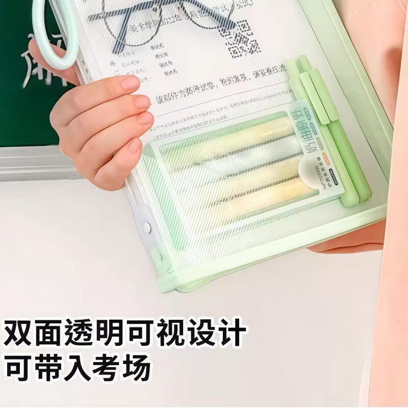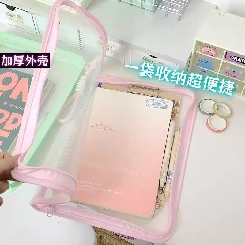 莫兰迪色透明加厚便携文具收纳袋考试手提袋学生资料文件袋学生科目袋透明拉炼式大容量加厚防水手提袋