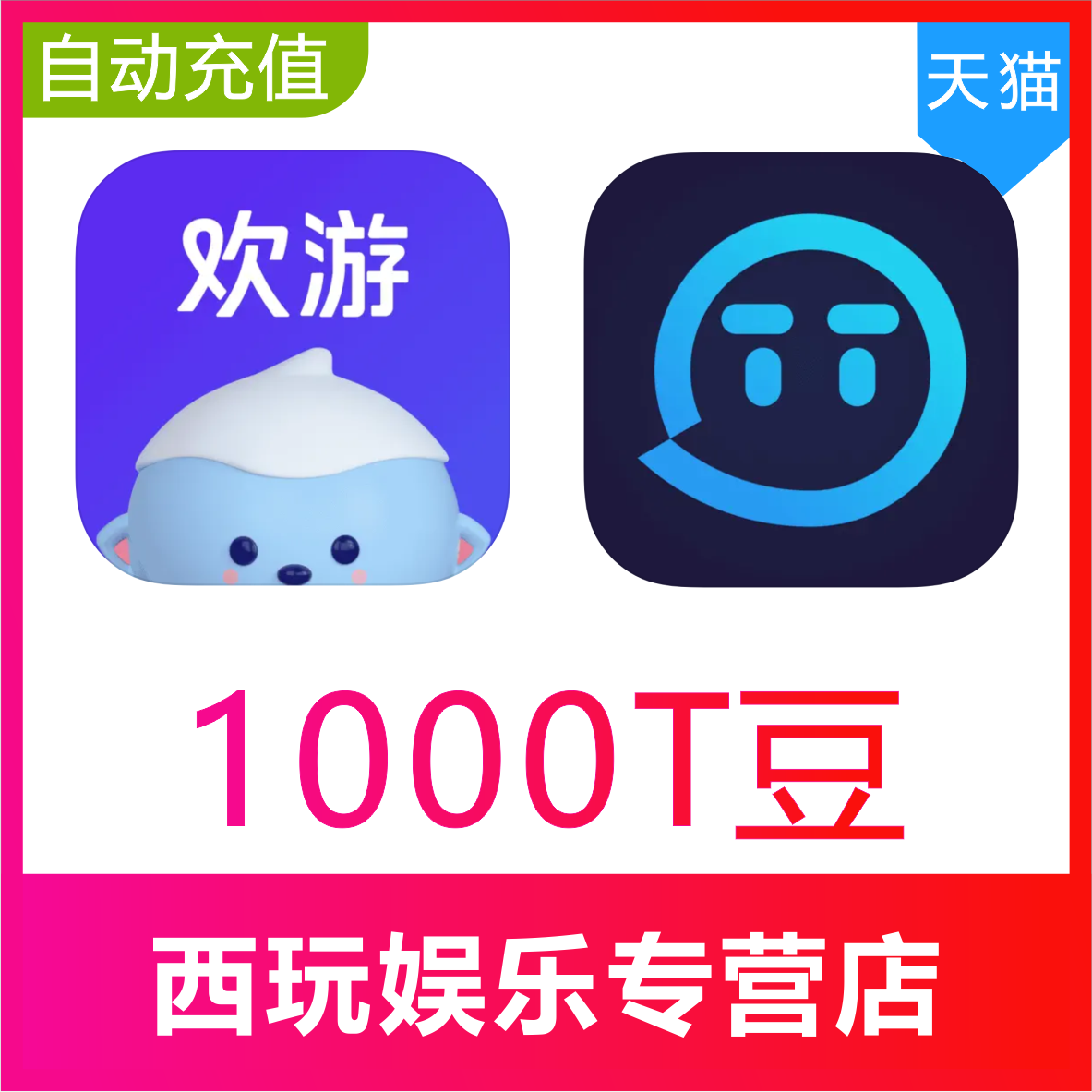 【自动充值】欢游TT语音直播1000 5000 10000 20000 50000T豆充值