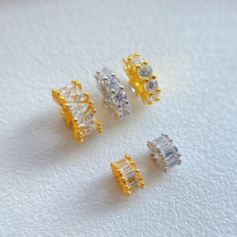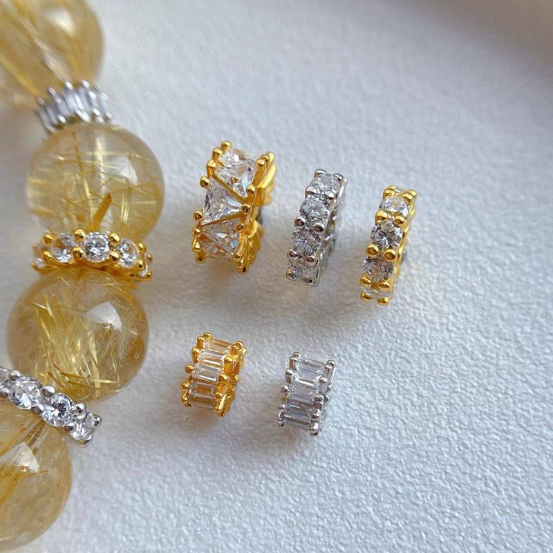925纯银饰配件水晶手串微镶锆石梯方大孔隔珠隔片垫片diy手串配饰