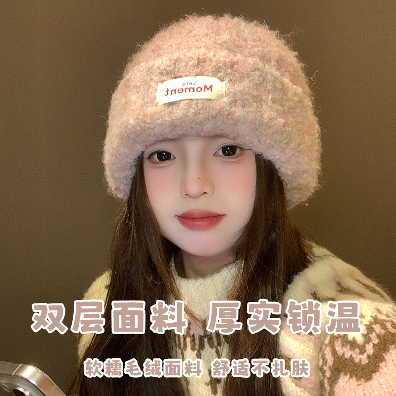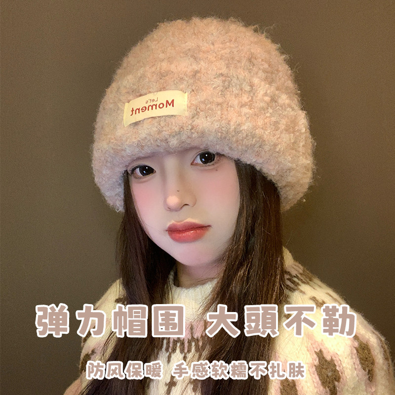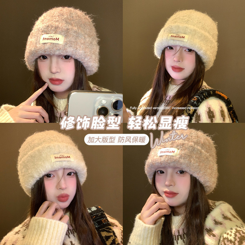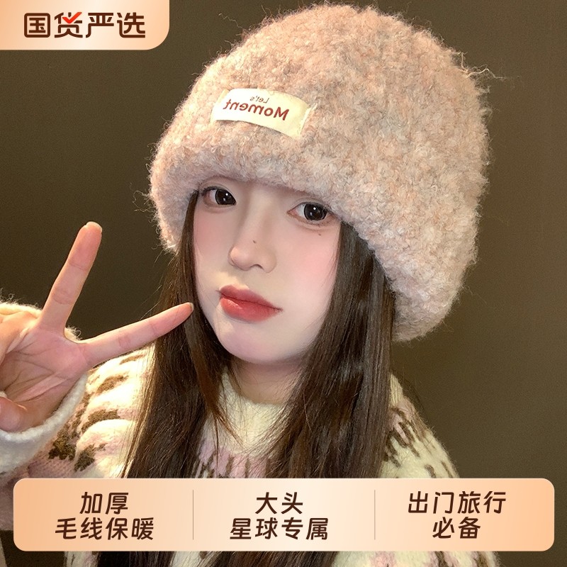 大头星球韩版时尚针织帽女冬季新款贴布字母设计显脸小百搭毛线帽