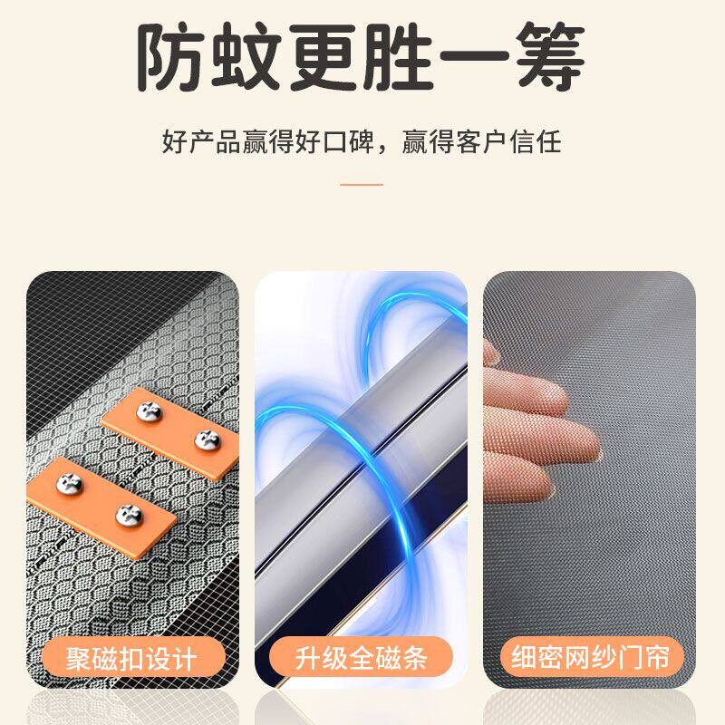 2025新款防蚊虫门帘免打孔全磁铁条夏季家用金刚网纱纱帘门磁铁自