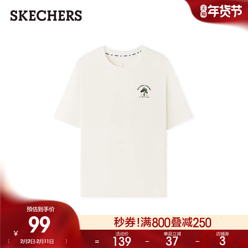 斯凯奇夏季男女同款宽松凉感短袖吸湿速干休闲上衣舒适运动T恤衫