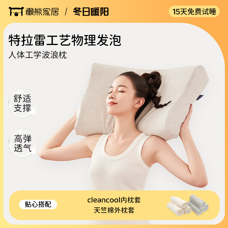 懒熊家居特拉雷工艺乳胶枕天然乳胶柔软透气贴合高弹可水洗枕头