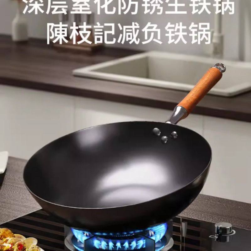 陈枝记铁锅熟铁炒锅家用无涂层老式炒菜锅不易粘燃气灶专用已开锅