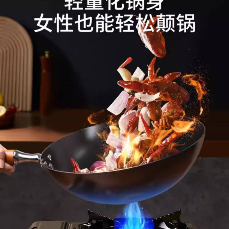 铁锅官方旗舰炒菜锅老式炒锅铁锅家用不粘锅无涂层燃气灶适用