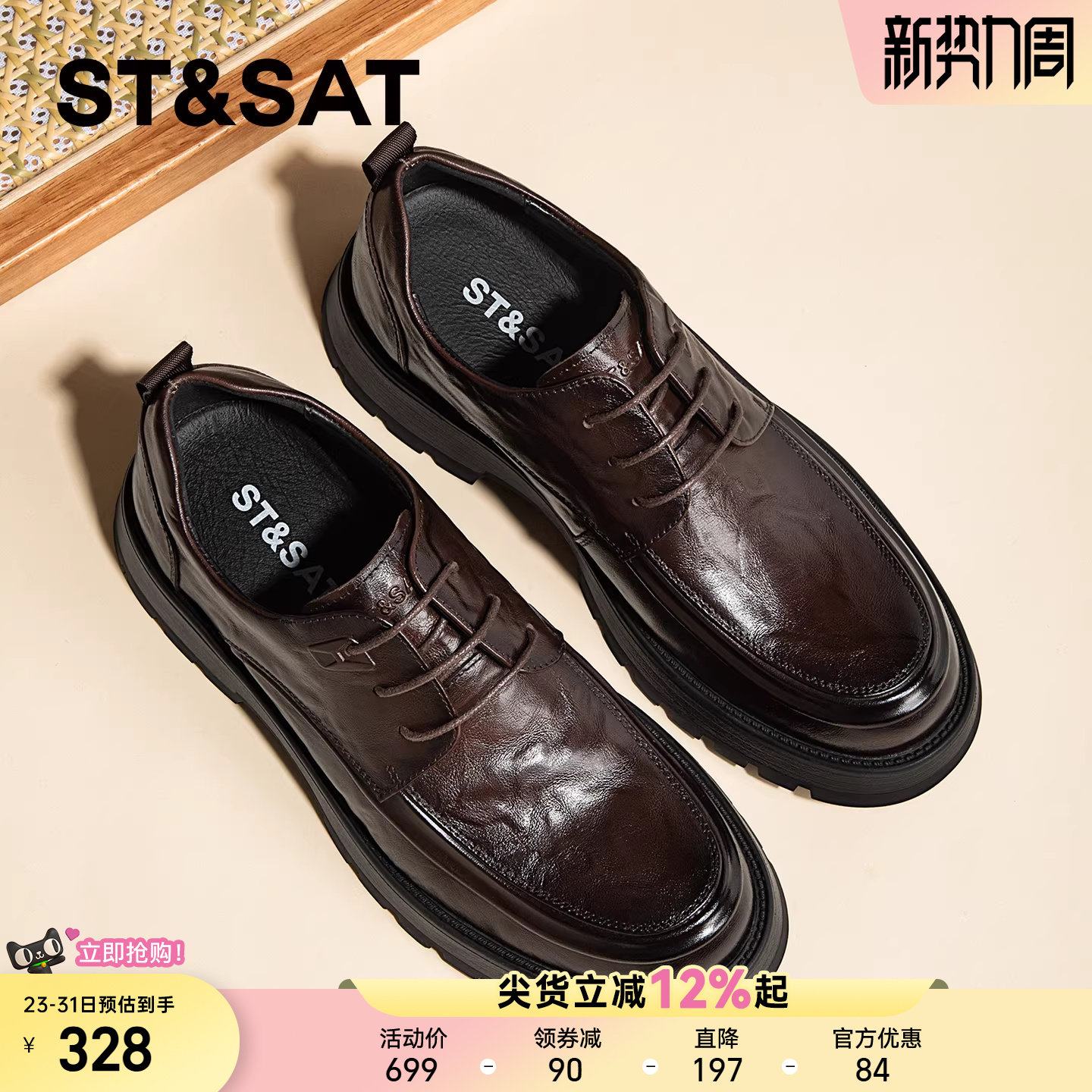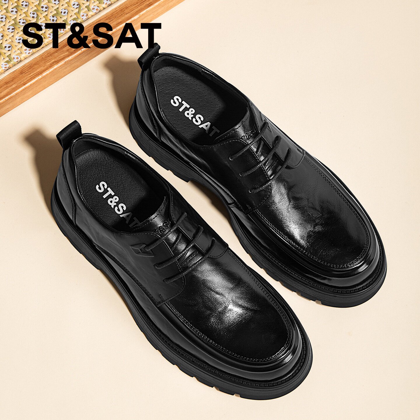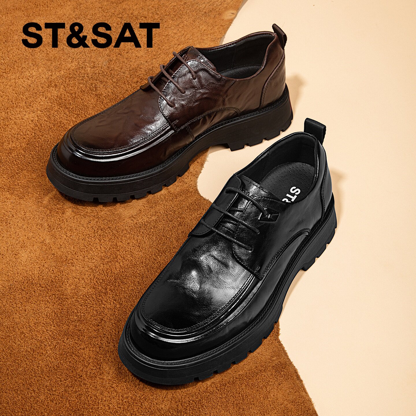 星期六男鞋商务正装男士皮鞋年轻款厚底增高真皮高级感通勤休闲鞋