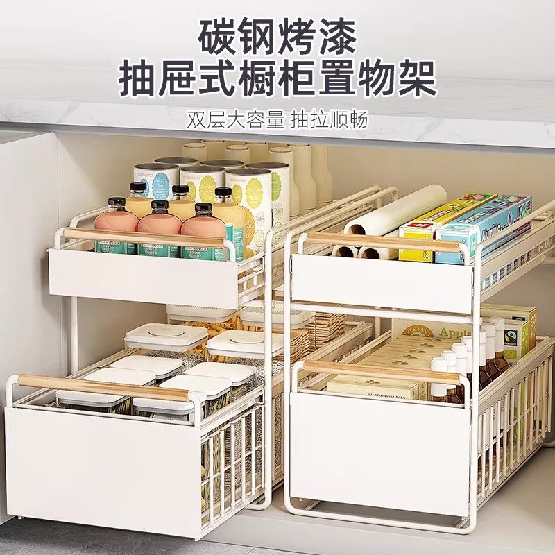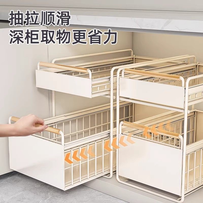 厨房橱柜拉篮下水槽置物架多功能碗碟调料收纳抽拉式分层架子