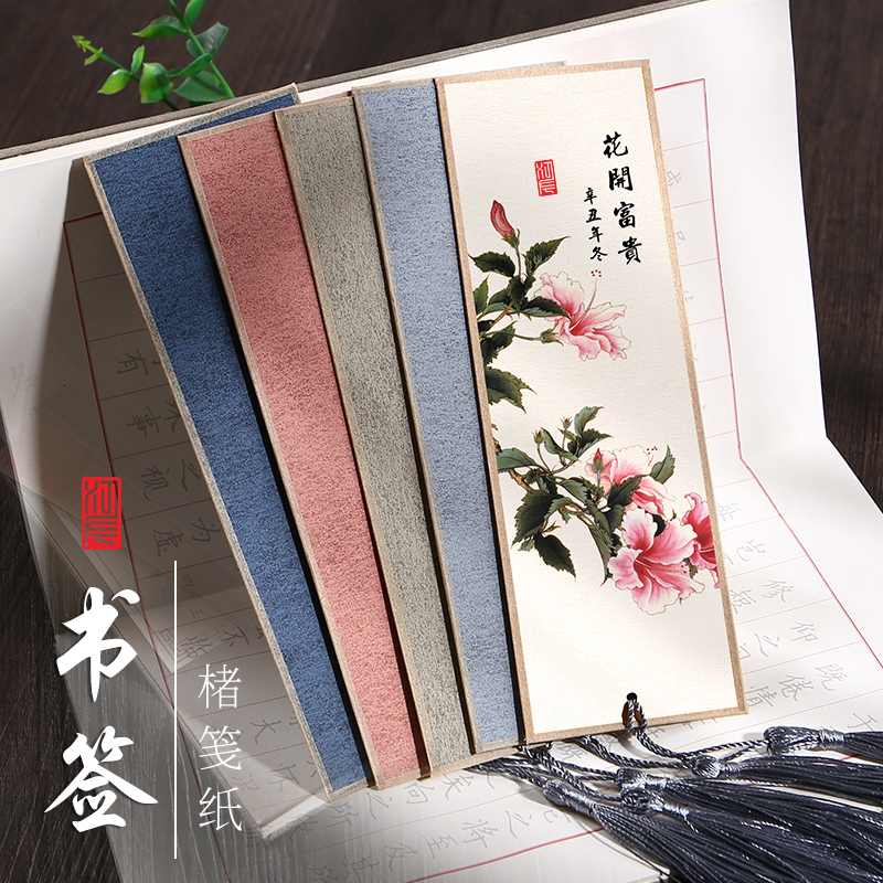 高档宣纸楮笺流苏书签双面熟宣软卡空白手工diy自制钢笔书法材料包画国工笔毛笔手绘古典中国风学生硬笔便签
