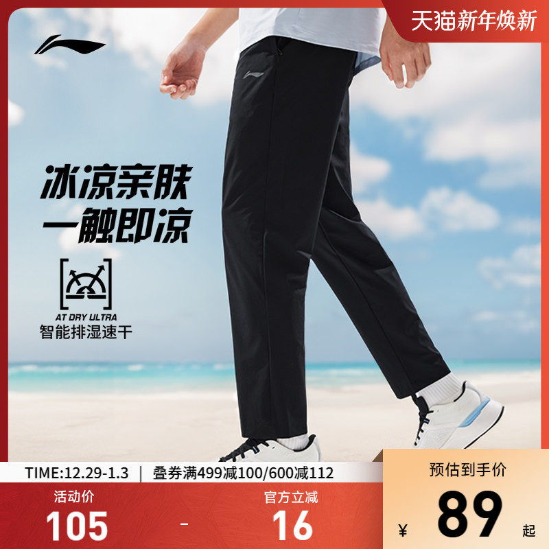 李宁速干裤男士夏季新款跑步裤透气黑色裤子直筒宽松运动裤长裤男
