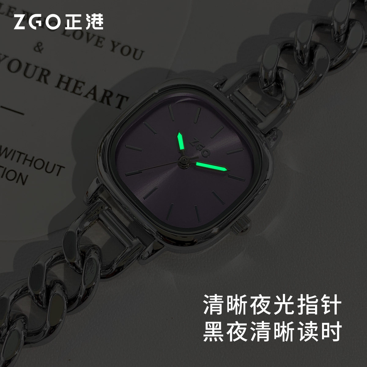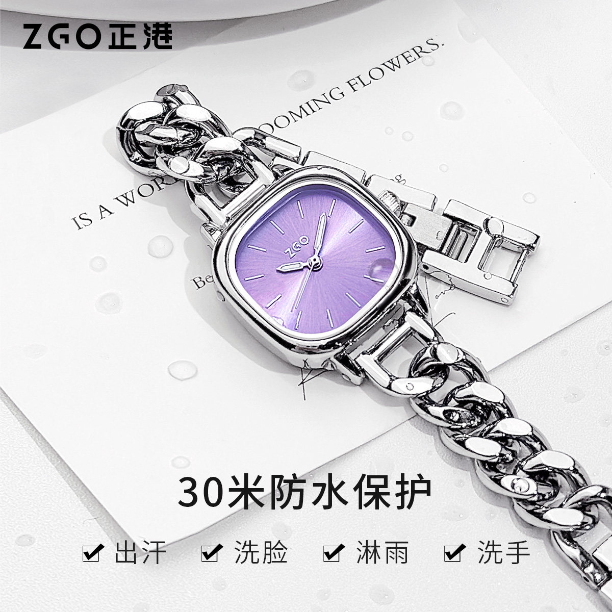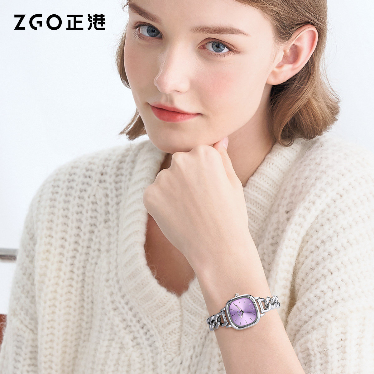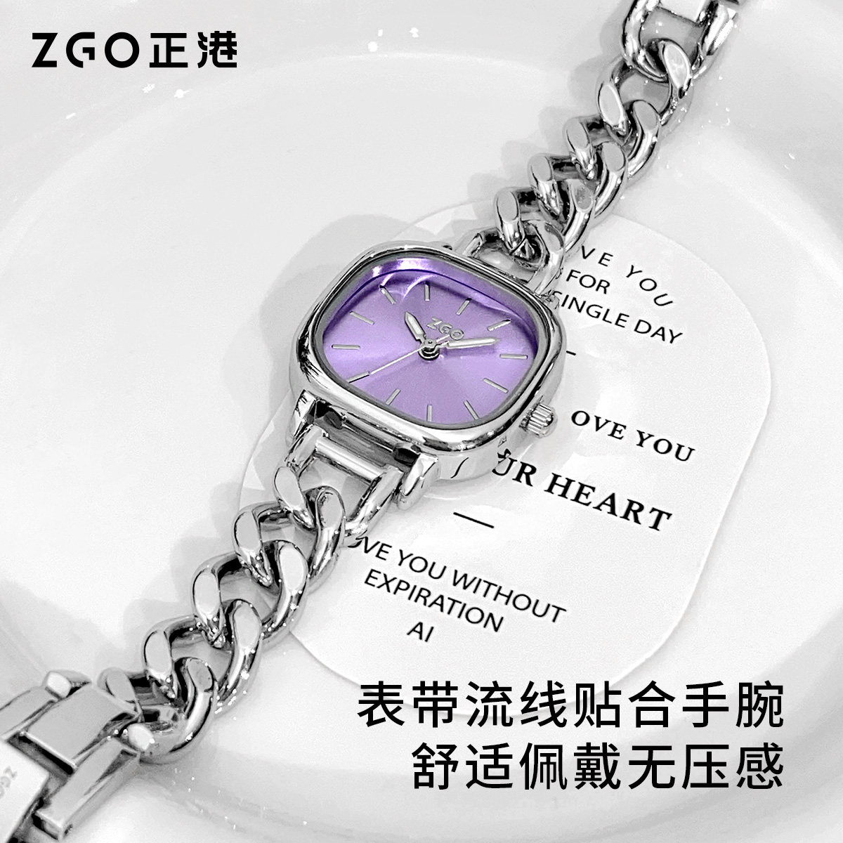 正港ZGO紫色手表女款轻奢小众女士腕表生日礼物新年礼盒女生闺蜜