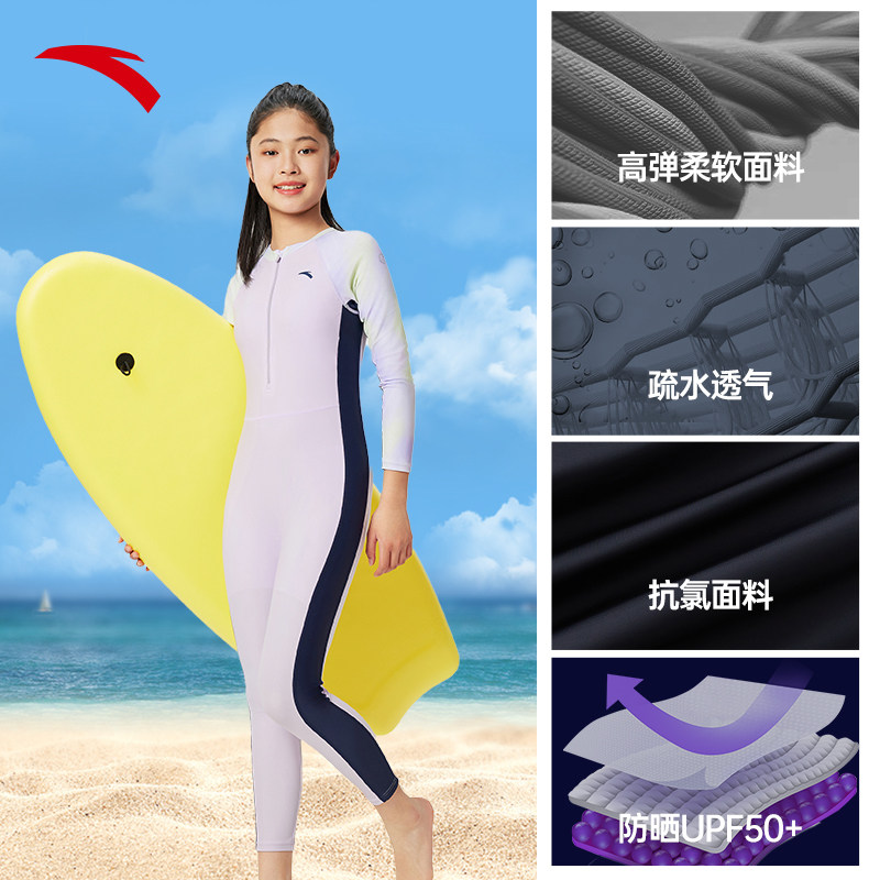 安踏儿童连体泳衣女童泳装泳裤长袖防晒保守学生泳衣A3824532469
