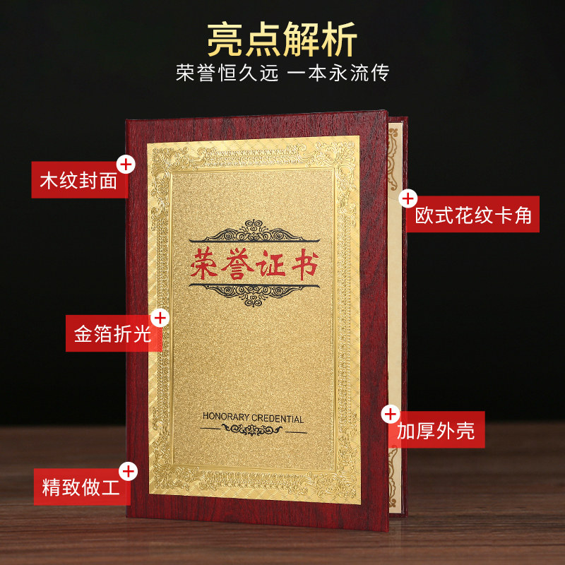 定做高档木纹金箔荣誉证书定制 木质优秀企业员工奖状套外壳订制