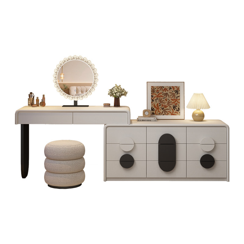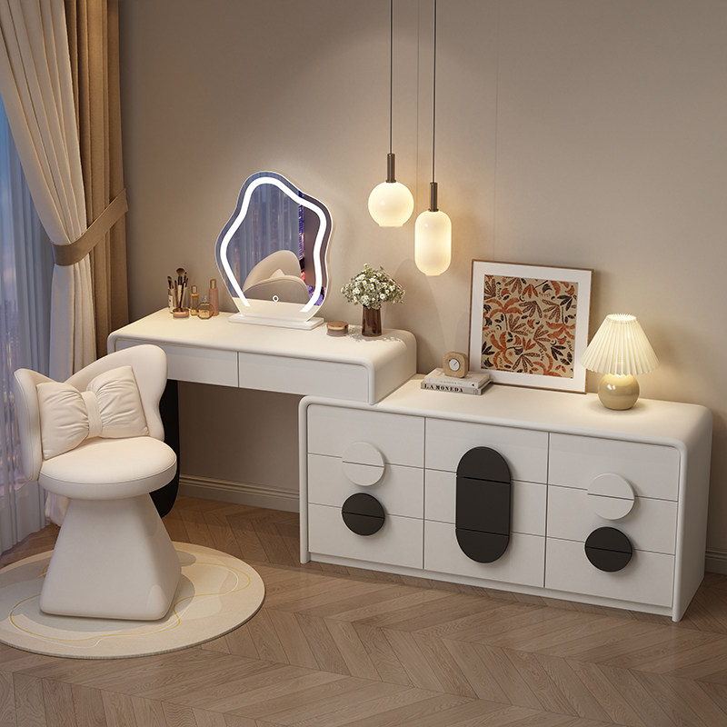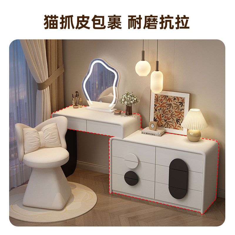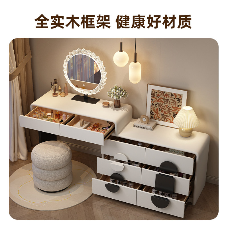 实木新款梳妆台卧室现代简约轻奢化妆台奶油风斗柜一体床尾化妆桌