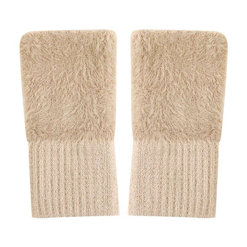 保暖毛线半指手套女冬季毛绒针织护手腕漏指触屏学生写字半掌加绒