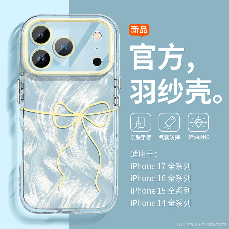 ins风蝴蝶结沃艾尼适用苹果17promax手机壳气囊全包iphone16pro防摔耐摔17e带挂链15韩系少女心14/13透明12潮