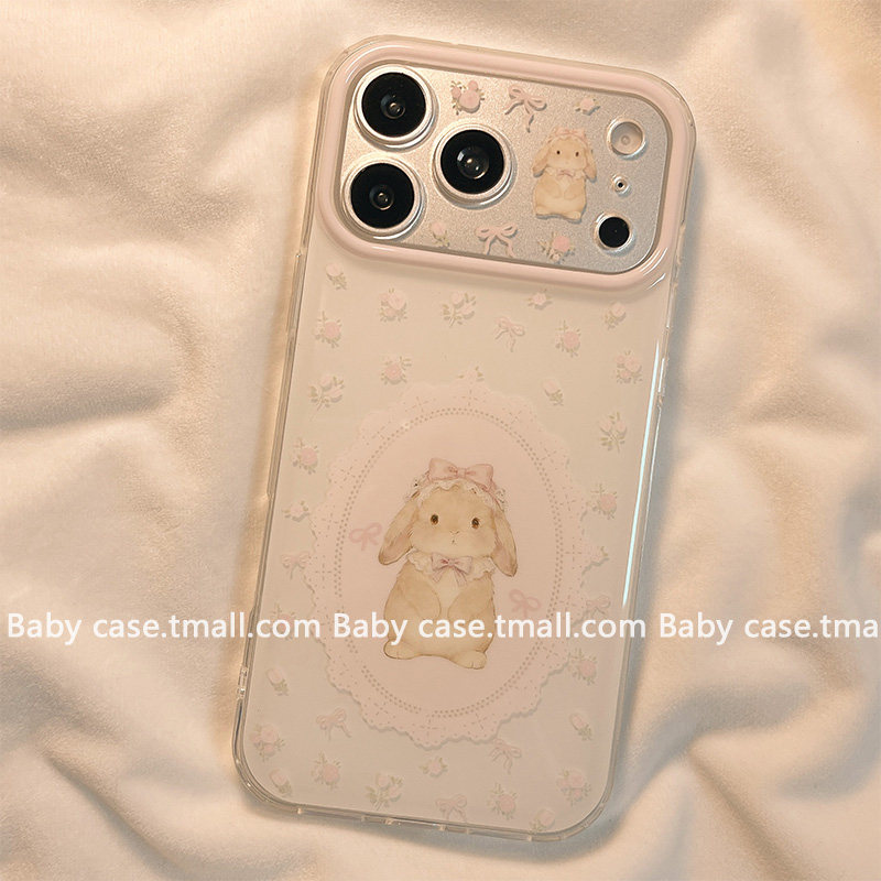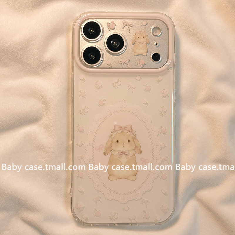 北比ins少女心碎花蝴蝶结兔子适用苹果17pro手机壳iphone16promax新款15卡通可爱14小众15pm韩系17双层16全包