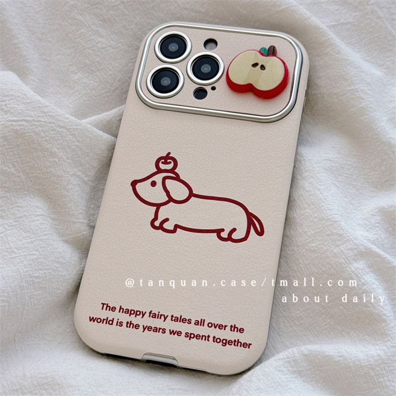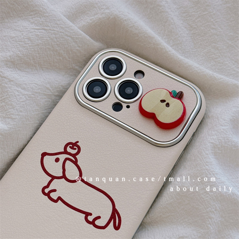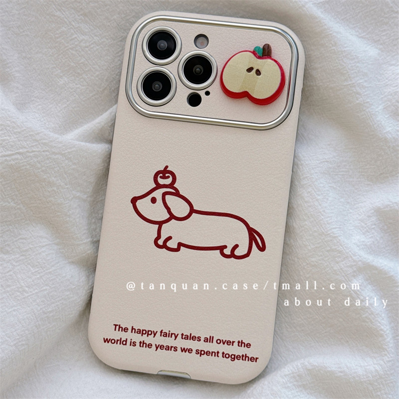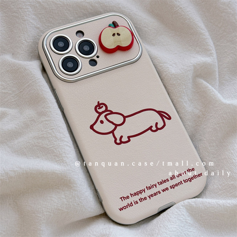 ins卡通立体苹果线条小狗适用16苹果15promax手机壳iphone14pro新款13女款12大视窗11皮质14日韩13pro全包软