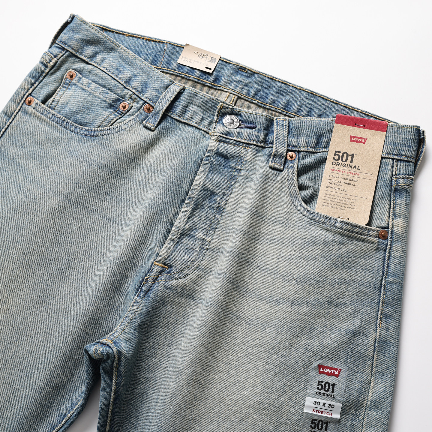 【自营】Levi’s/李维斯501做旧水洗男士宽松直筒牛仔裤百搭长裤