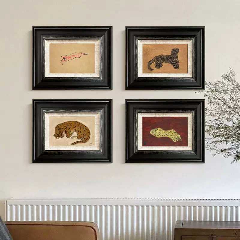 金钱豹装饰画法式现代艺术设计师中古挂画客厅餐边柜卧室玄关壁画