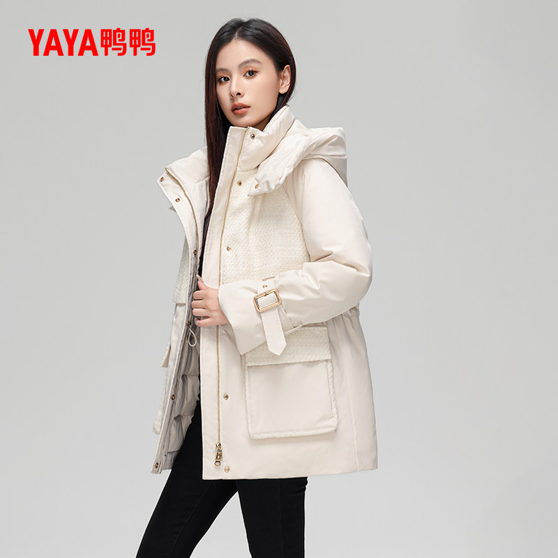 鸭鸭羽绒服女士2025年冬季新款中长款时尚韩版修身保暖加厚外套A
