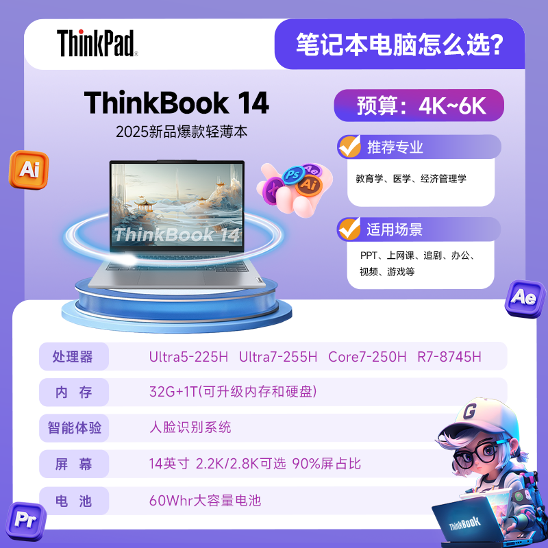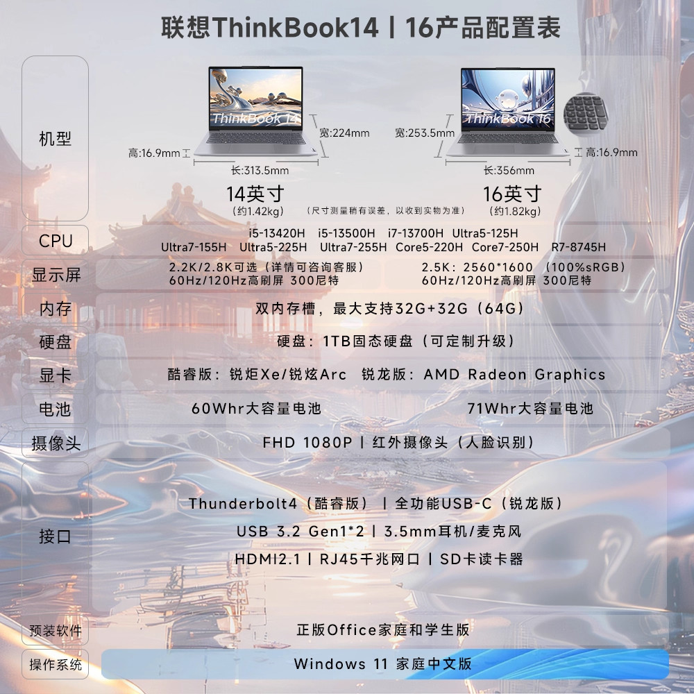 【爆款推荐】联想ThinkBook14/16 2025新款酷睿Ultra5/7 16英寸轻薄便携游戏笔记本电脑学生商务办公ThinkPad