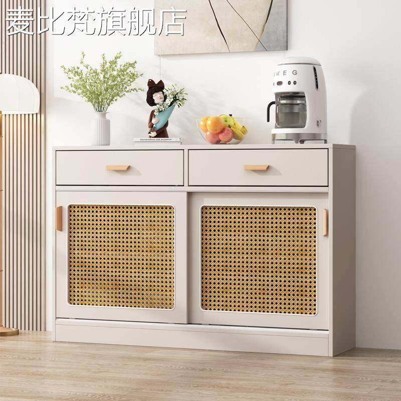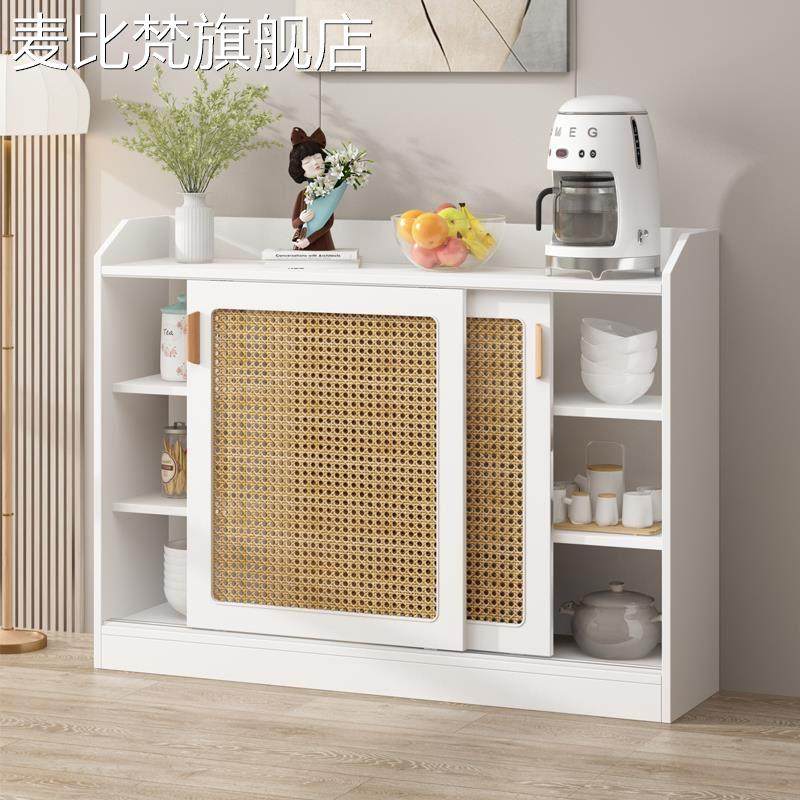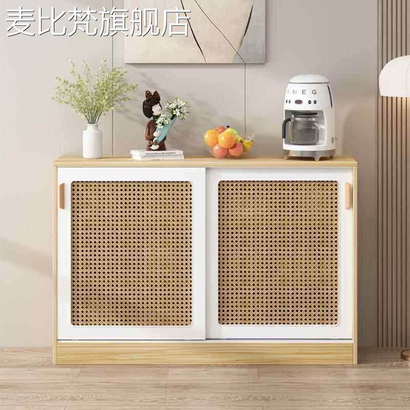 麦比梵餐边柜现代简约藤编储物柜家用小户型厨房碗柜靠墙轻奢玄关收纳柜摆件饰品床笠拉车