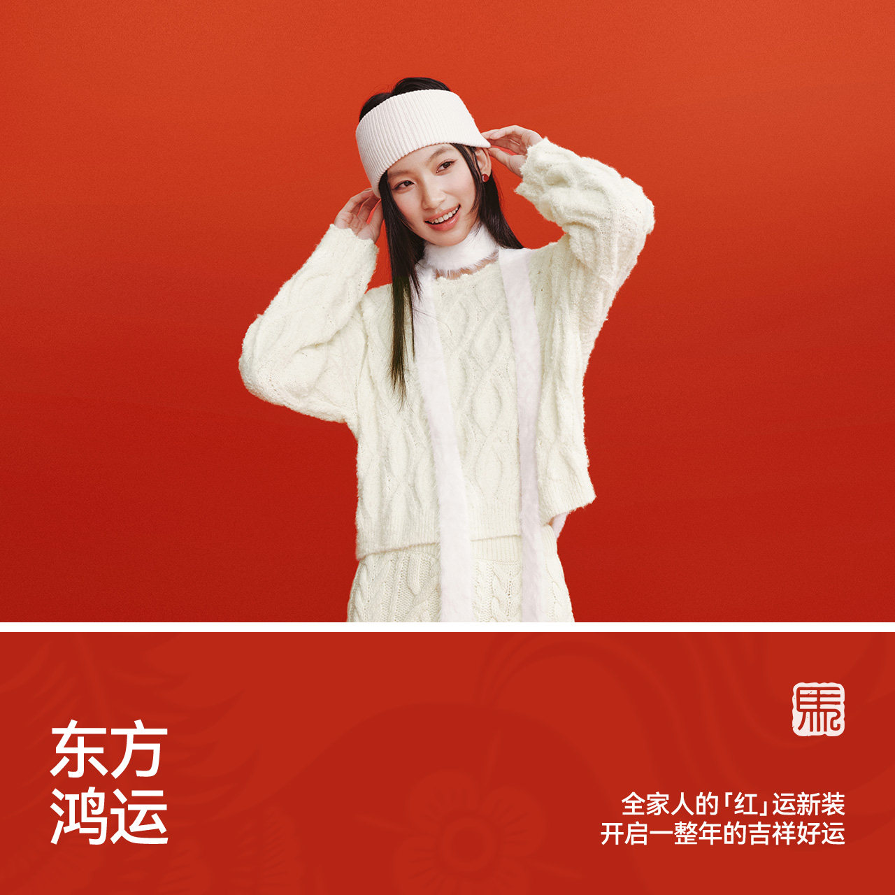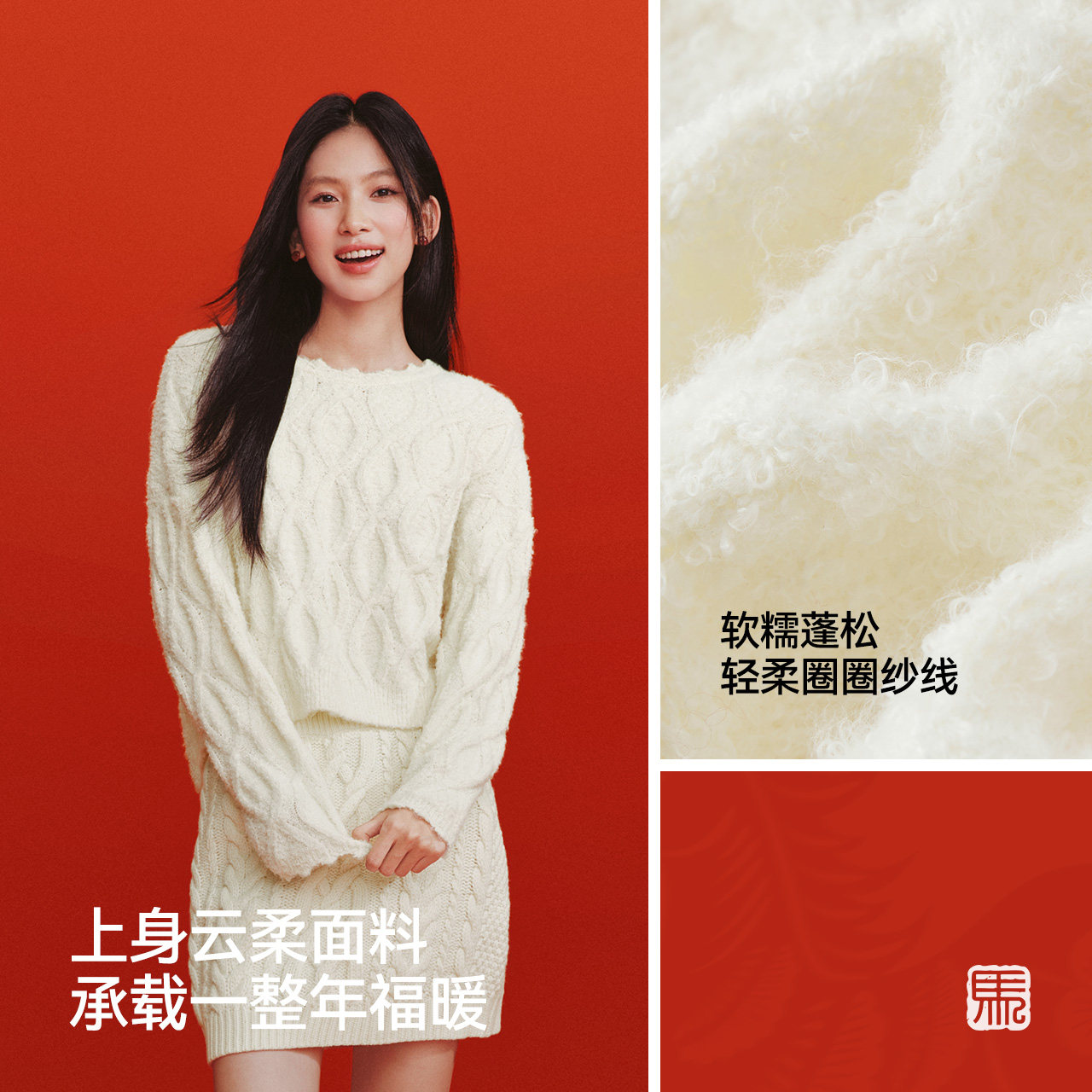 森马毛衣女春季红色短款绞花花边宽松2026新款新年毛衣慵懒套头衫